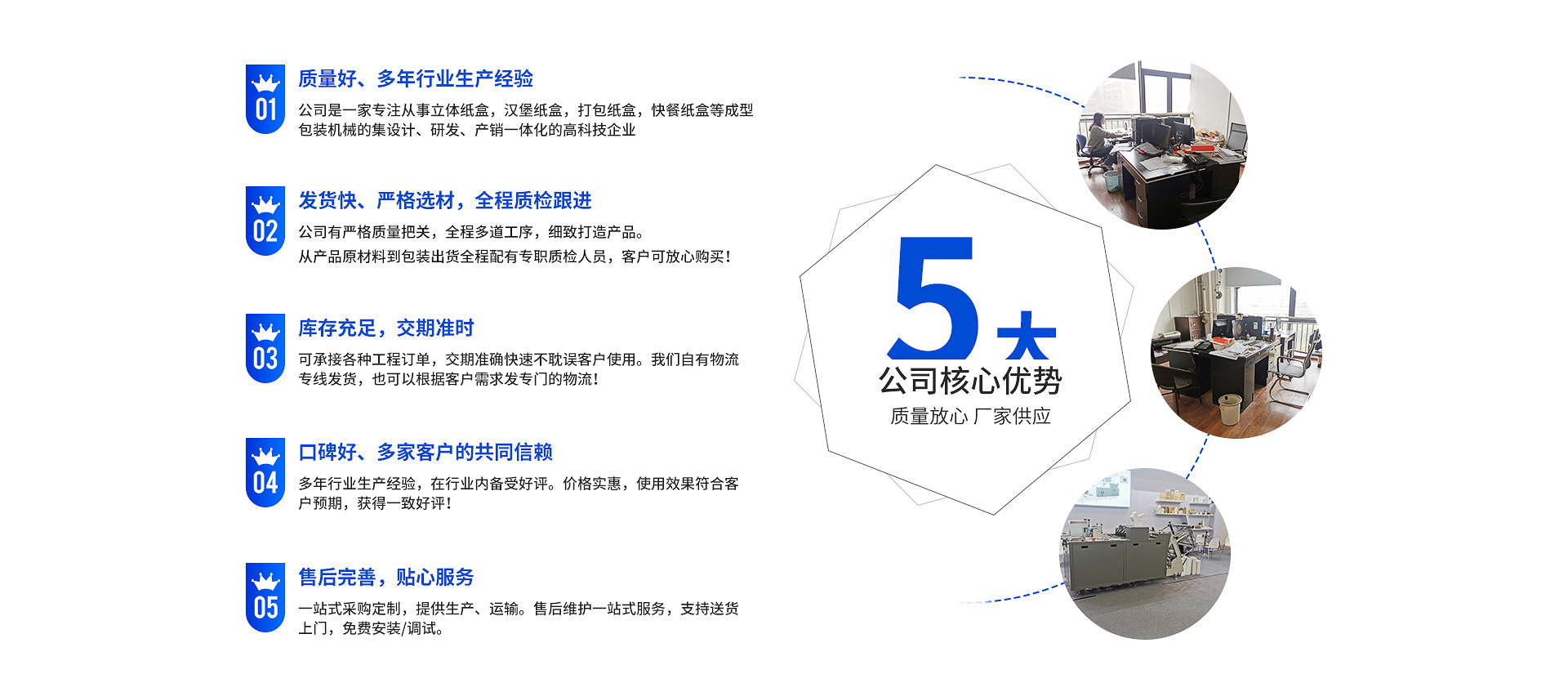 瑞安市中法機(jī)械有限公司是一家從事立體紙盒機(jī),漢堡紙盒機(jī),打包紙盒機(jī),快餐紙盒機(jī)等成型包裝機(jī)械的設(shè)計、研發(fā)、產(chǎn)銷一體化的高科技企業(yè)。公司有現(xiàn)代化的管理體系和完善的售后服務(wù)體系;有一支具有充滿青春活力的精銳研發(fā)團(tuán)隊!自成立以來,中法公司堅守“誠信、學(xué)習(xí)、發(fā)展”的企業(yè)發(fā)展理念,堅持“以誠信為道、以質(zhì)優(yōu)取勝”的經(jīng)營原則,在市場競爭中取得了良好的社會和經(jīng)濟(jì)效益!